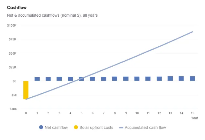 Once you’re past that point, every dollar you save on electricity is real surplus savings you wouldn’t have had without solar.